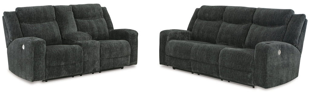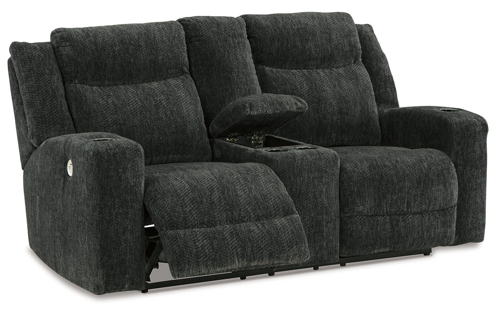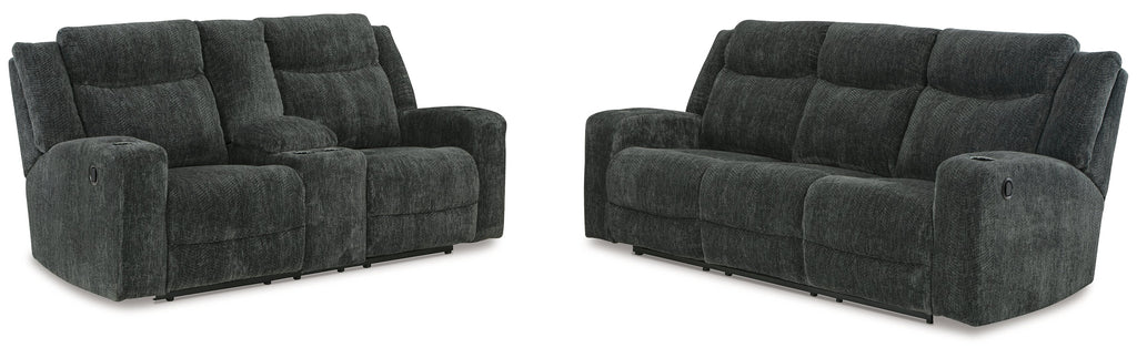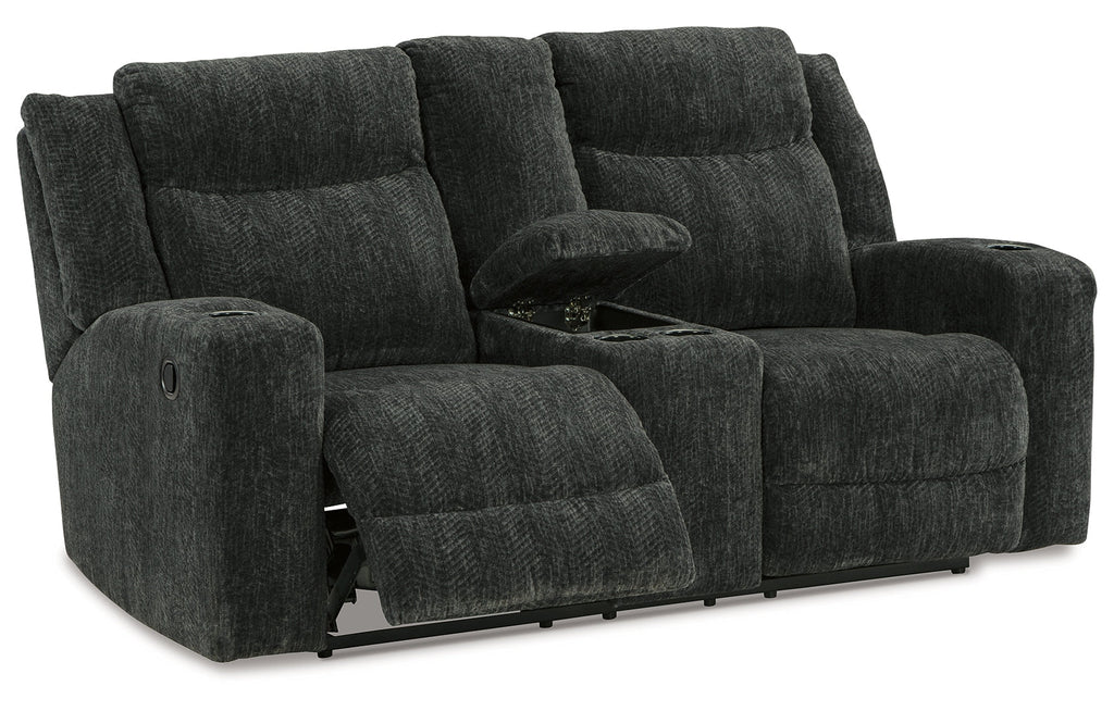 Ideal for those who seek synergy of form and function, this seating package is made for everyday indulgence. Its motion features are decidedly modern; the upholstery velvety soft. A versatile, dark neutral hue takes you back to style basics. Track arms frame the chunky profiles, completing this relaxed approach to contemporary decor.