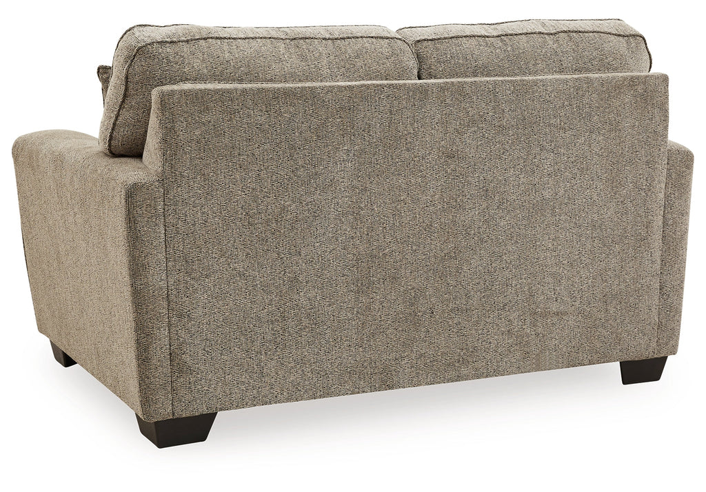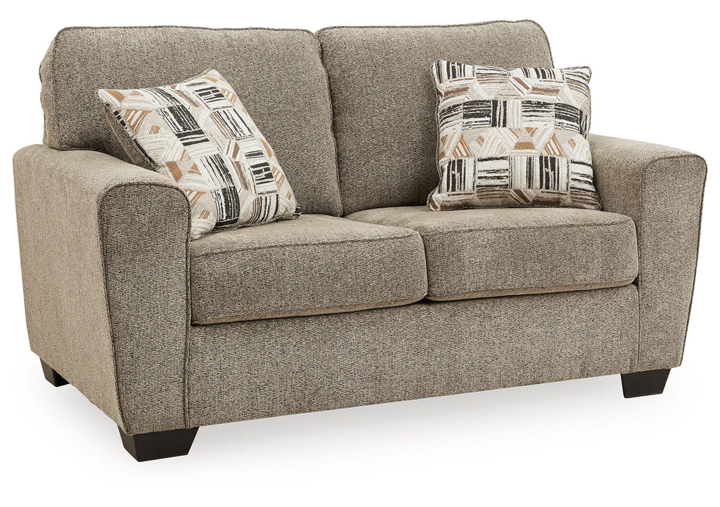 For an upholstery package that feels as good as it looks, the choice is clear. This package's neutral mocha hue blends effortlessly with any room decor and color scheme. The soft textured chenille fabric with chevron effect beckons you to sit, prop up your feet and relax. Wide track arms elevate the look with a touch of contemporary sensibility, enticing you to settle in and stay awhile.