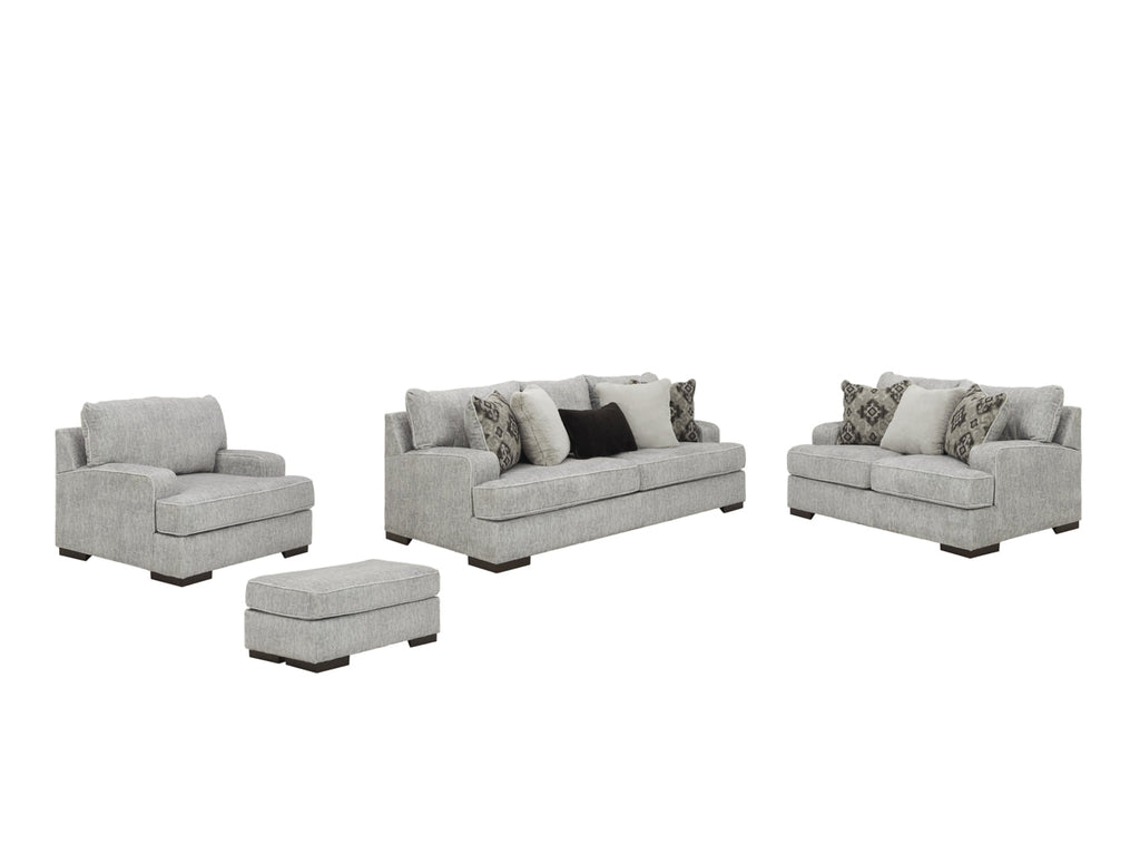 This 2-piece sofa and loveseat set with deep seats crafted for ultra-plush softness is the ideal merger of modern flair and classic staying power. If you love a touch of texture, you’re sure to appreciate this set's gorgeous gray upholstery with subtle chevron effect.