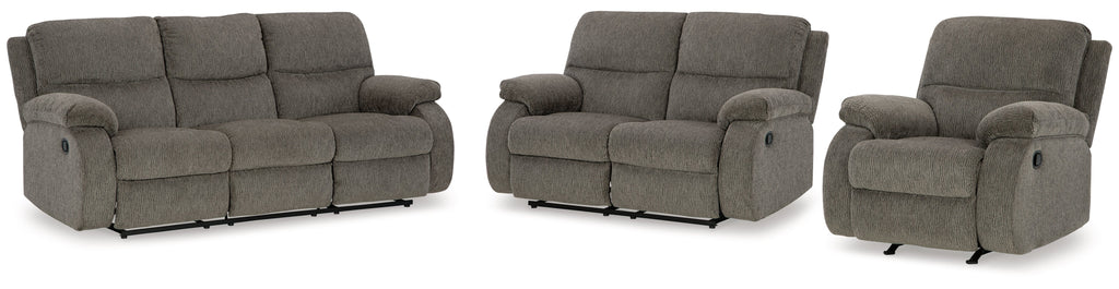 Craving a simple spot to relax and recharge? The Scranto seating package encourages you to take a break from the everyday grind. Its contemporary bustle backs and versatile hue bring stylishly soft comfort to a seating area. And when you’re ready to recline, the simple pull tab motion has you kicking back in no time.