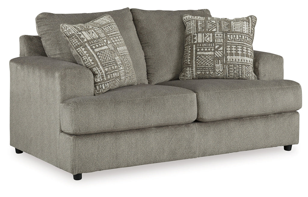 Flaunting a trendsetting silhouette, this sofa and loveseat put the contemporary in your contemporary home. Its “three over two” profile eliminates the center seat cushion, giving you elongated plushness and deep seating. Microfiber fabric satisfies your need for pieces that feel as good as they look. Accented with soft jacquard chenille throw pillows for a splash of geometric pattern and color contrast.