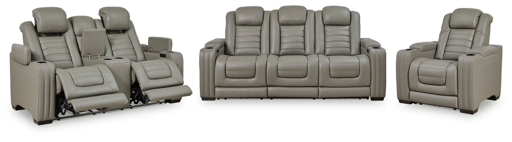 With its fashion-forward sense of style, this power reclining sofa, recliner and loveseat package has you covered with high-tech advancements and down-home comfort. For starters, the seating area and armrests are upholstered in real leather for true indulgence where it matters most. Love being pampered? With the touch of a button, experience the pure bliss of an air massage system (with three settings), or chill out with the heated seat element. Distinctive elements of this power set include contemporary waterfall tufting that beautifully goes with the flow, and a zero-gravity mechanism further raising the ottoman for better blood flow.