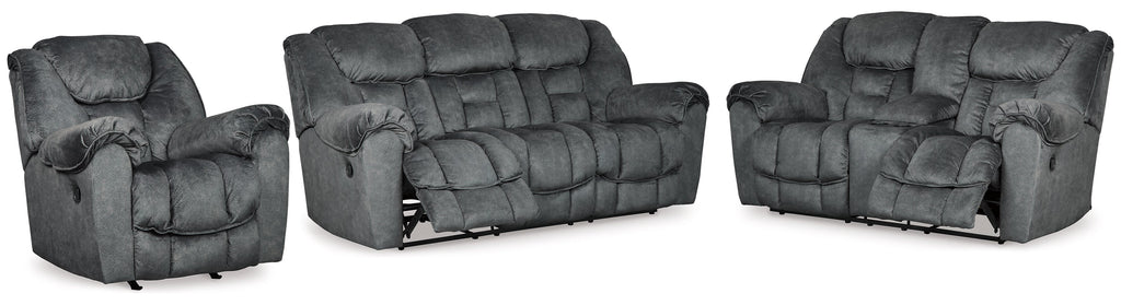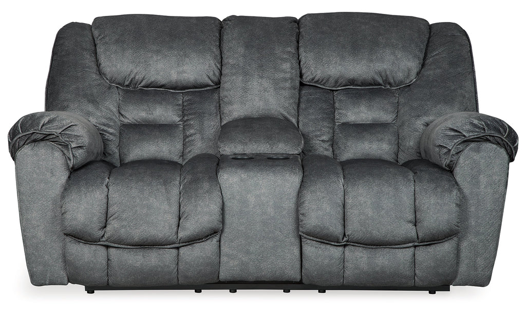 Sometimes seeing is believing. Rest assured this reclining sofa and loveseat set is every bit as indulgent as it looks. Designed to put you in the lap of luxury, this generously scaled reclining sofa and loveseat—wrapped in a wonderfully plush and practical granite gray upholstery—sport scooped pillow wrapped armrests and curvaceously cushioned head-neck support for feel-good flair.