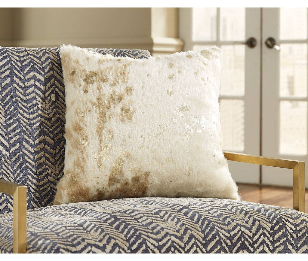 This faux fur accent pillow makes indulgence comfortably affordable. Masterful mix of cream and goldtone hues is a delightful change from the ordinary. Cozy feel is the essence of luxury living.