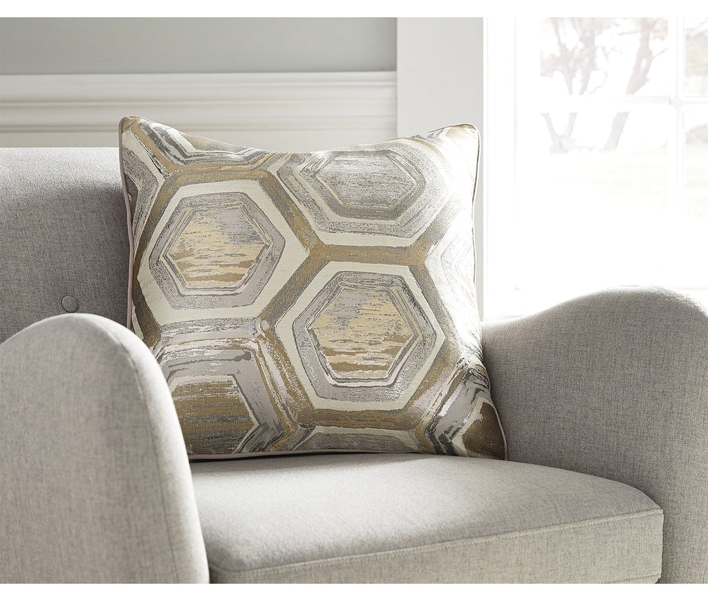 Bring an effortlessly cool and contemporary feeling to a space with this toss pillow. A hint of metallic sheen takes its neutral palette to a new level, while the hexagon pattern is perfectly on point.