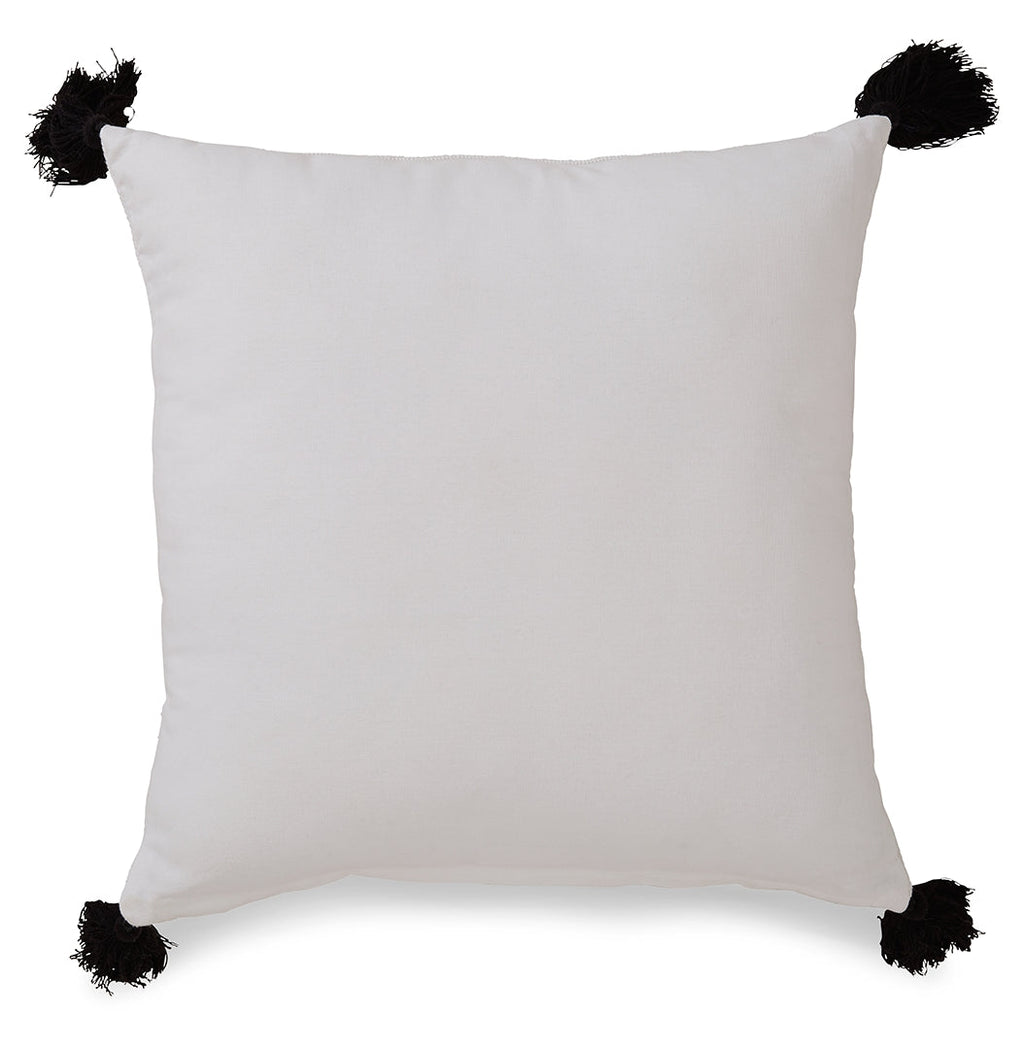 Embrace the easy elegance of this pillow. A rib stripe design in black and white has a universal appeal, suiting spaces from casual to contemporary. With black tassels on each corner, it’s a timeless way to incorporate texture.