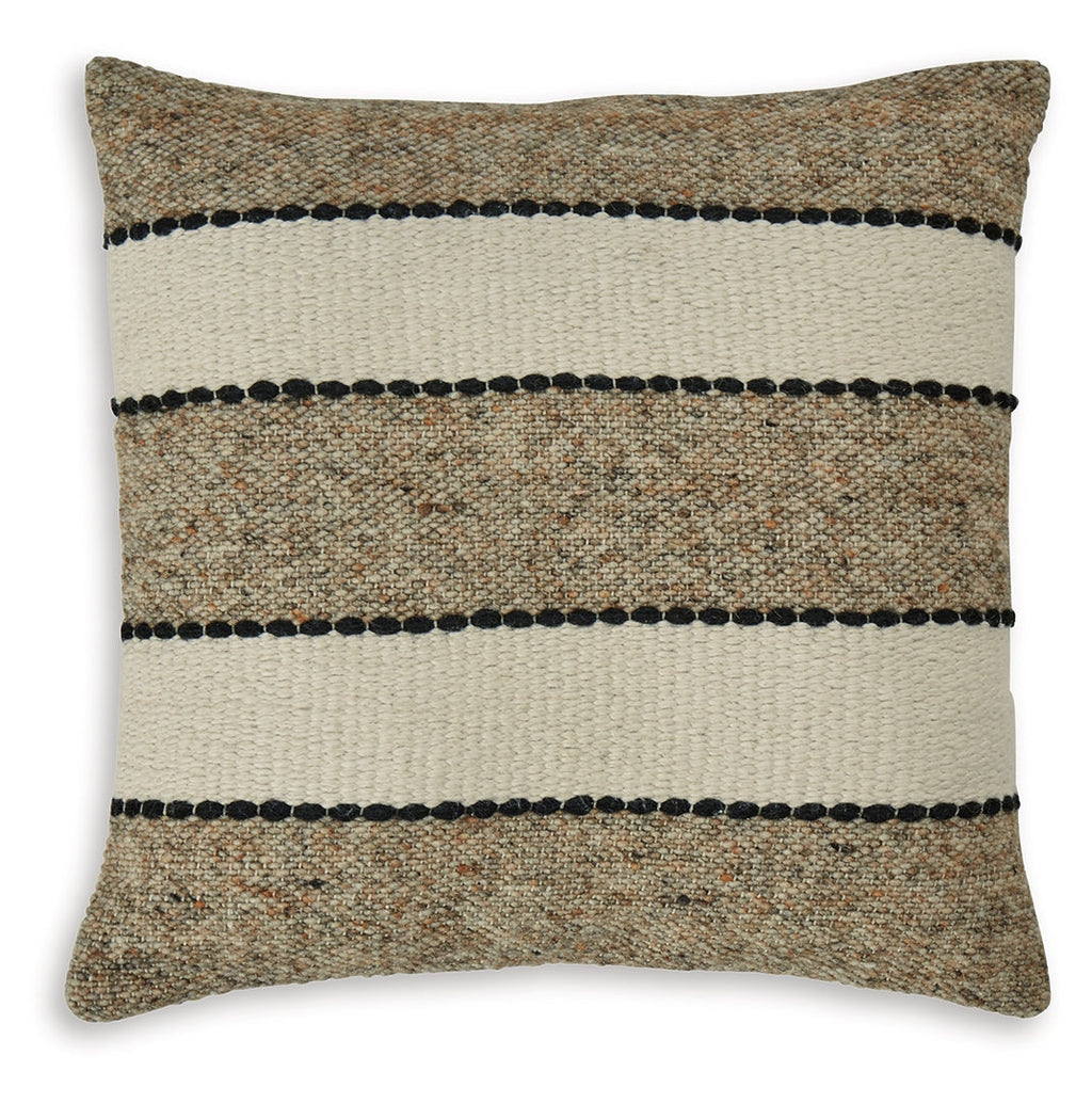 Teeming with texture, the Rueford pillow makes a fresh design statement. With stripes that delight and hues that create a warm and cozy feeling, it adds a touch of modern elegance to your home's decor.