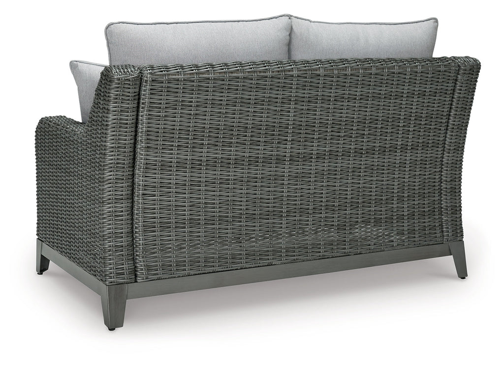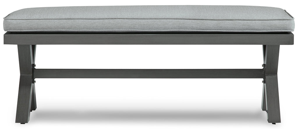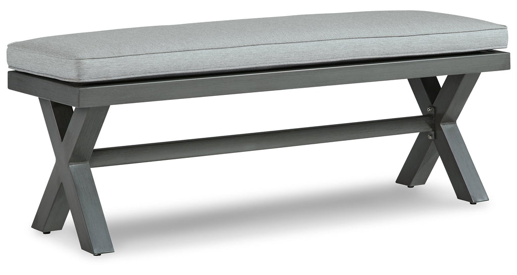 Add a distinguished touch of gray to your outdoor living space with this bench. It's made with an aluminum frame with a wood-look finish for a relaxed feel that provides seasons of enjoyment. Rest assured, the thick seat cushion is wrapped in Nuvella® high-performance fabric that’s fade-resistant, stain-resistant and a breeze to clean.