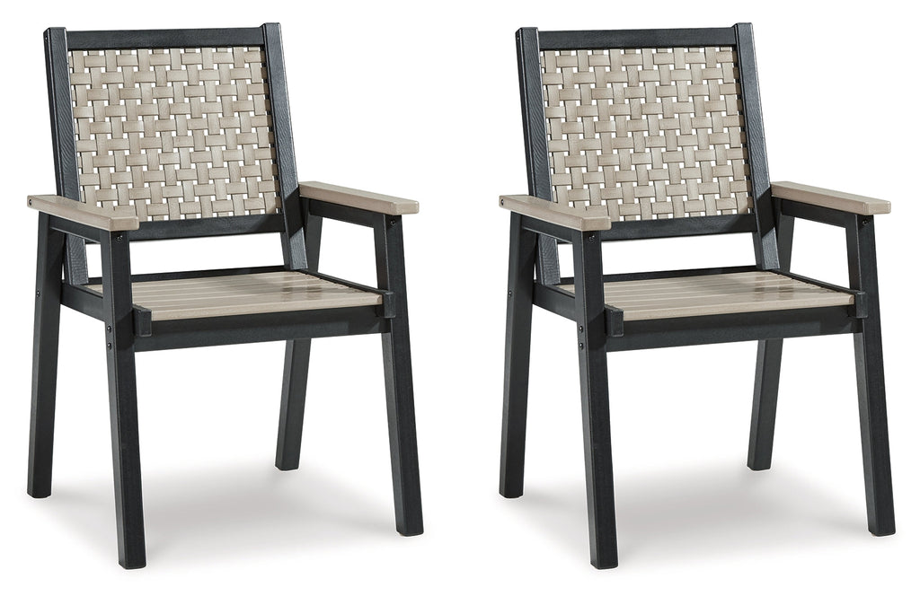 On-trend stylings take to the outdoors with this arm chair. Its two-tone look in driftwood and black has a laid-back luxe appeal. High design meets durability with this outdoor chair's weather-resistant HDPE construction—a stunning display of form and function.