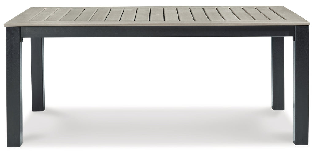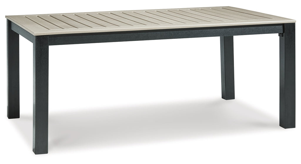On-trend stylings take to the outdoors with this dining table. Its two-tone look in driftwood and black has a laid-back luxe appeal. High design meets durability with this outdoor table's weather-resistant HDPE construction—a stunning display of form and function.
