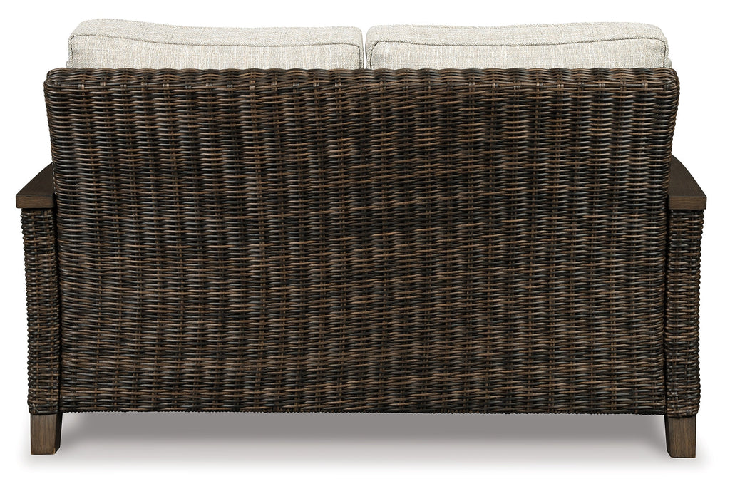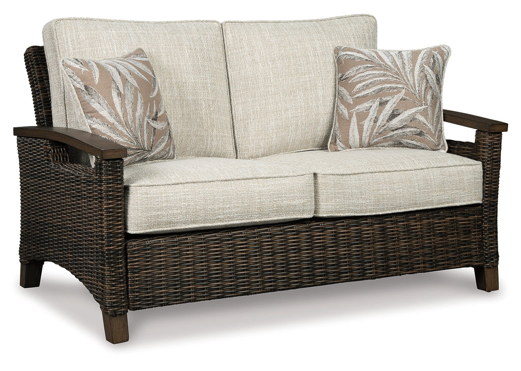 Pretty enough for trendy interiors, yet durable enough to weather the elements, the Paradise Trail outdoor loveseat rises to the challenge beautifully. Handwoven resin wicker over rust-proof aluminum merges high style with low maintenance. Rest assured, though the exposed armrests and feet look remarkably like wood, their sturdy aluminum construction is perfectly suited for alfresco living. Plush seat cushions and throw pillows wrapped in high-performing Nuvella® fabric aim to please.