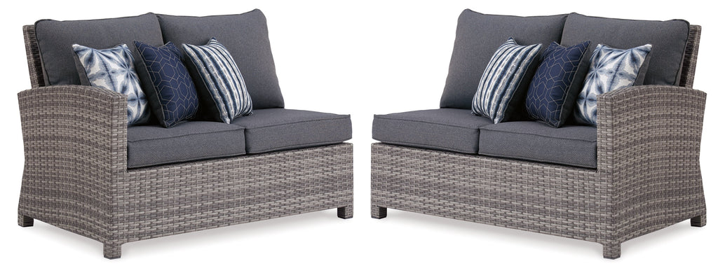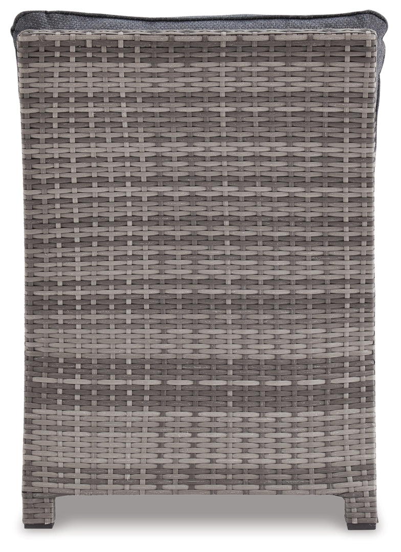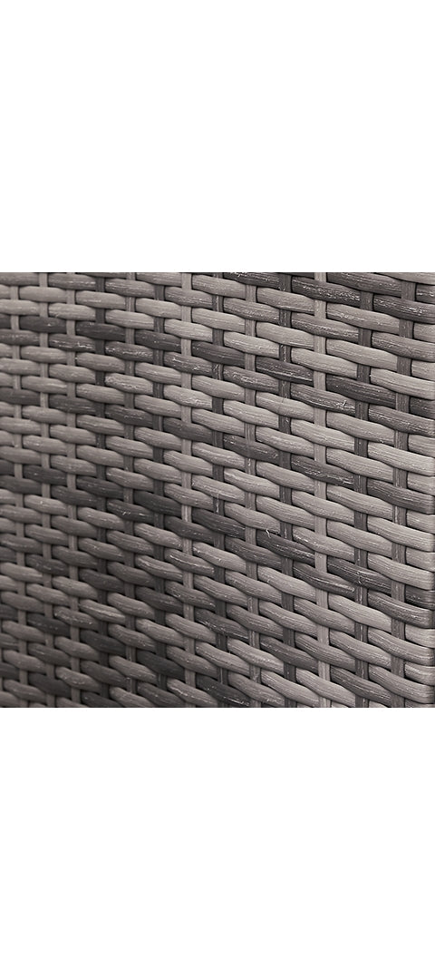 Bring a coastal cool vibe to your outdoor living space with this outdoor package. What looks like rattan is actually handwoven resin wicker in gray with all-weather protection. Rest assured, the gorgeous blue-gray cushions are covered in Nuvella® fabric that weathers the elements and is a breeze to clean. The concealed frame is powder coated for seasons of carefree use.