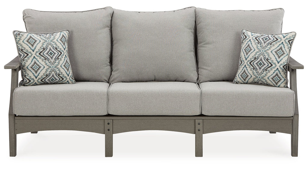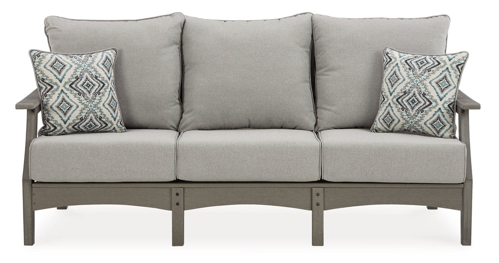 It’s the dawn of a new day for gray. Embrace the style trend with this outdoor conversation set. Each piece is crafted of HDPE material, combining the exceptional durability and weather resistance you need with the “wood look” you love. The coffee table and comfortably cushioned seats take alfresco living to a whole new level. A slatted table top infuses a plank-style, farmhouse-inspired touch and naturally sheds rainwater. Rest assured, the thick cushions on the sofa and lounge chairs are wrapped in Nuvella® high-performance fabric that’s fade-resistant, stain-resistant and a breeze to keep clean.