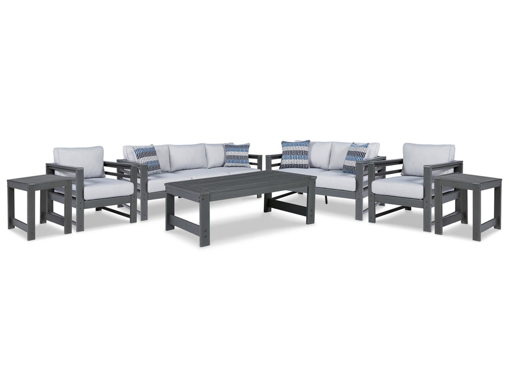 Indulgently comfortable furniture shouldn't be limited to inside spaces. Create your own outdoor oasis with this outdoor package. A study in form and function, the trend-right charcoal gray frame is crafted from MEGA TUFF™ HDPE material for durability and weather resistance. Cushions wrapped in high-performing Nuvella® fabric are comfortable and carefree.