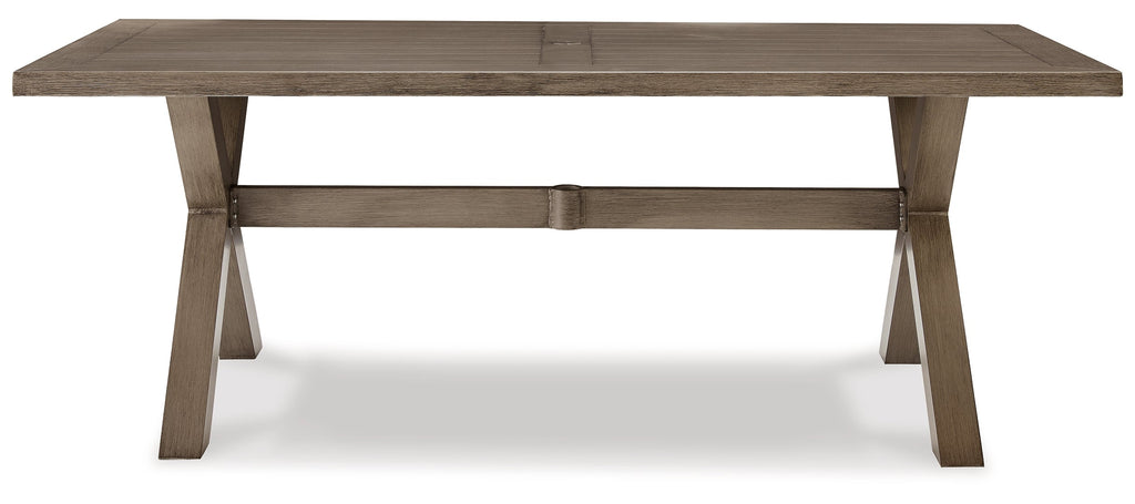 Balancing effortless natural beauty and minimalist design, this dining table seamlessly brings your contemporary style outdoors. Sporting a wood-look finish, it entices with its striking linear form. This sleek yet durably made table refines the art of relaxed outdoor living.