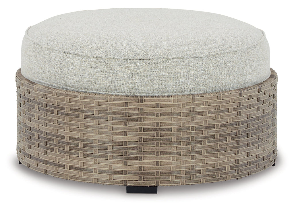 This cool, casual outdoor cushioned ottoman will raise the comfort level and visual appeal of your outdoor living space. Made of handwoven wicker in easy-going beige tones, the ottoman blends beautifully into your lanai or pool and patio area with a comfy cushion wrapped in Nuvella® high performance fabric that is stain resistant, fade resistant and easy to clean. This companion piece can be used on its own or paired with other pieces of the matching sectional to create a space that holds up to Mother Nature and ages gracefully for years of enjoyment.