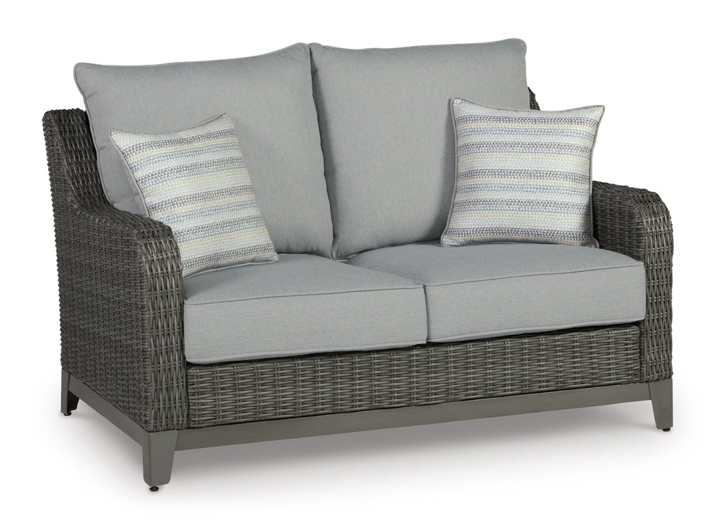 Add a distinguished touch of gray to your outdoor living space with this seating set. The sofa and loveseat are made with resin wicker over an aluminum frame for a relaxed look that provides seasons of enjoyment. Rest assured, the thick seat and back cushions are wrapped in Nuvella® high-performance fabric that’s fade-resistant, stain-resistant and a breeze to clean.