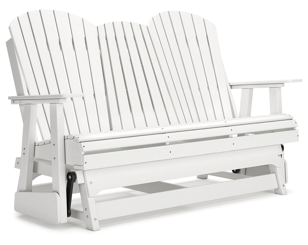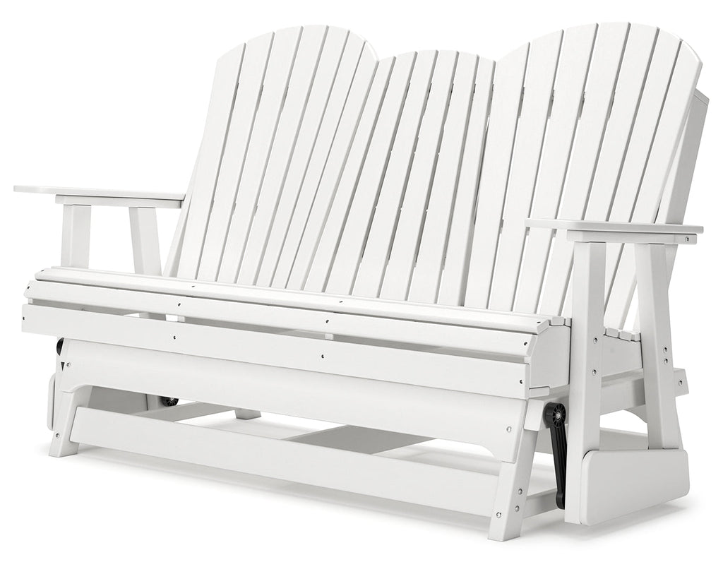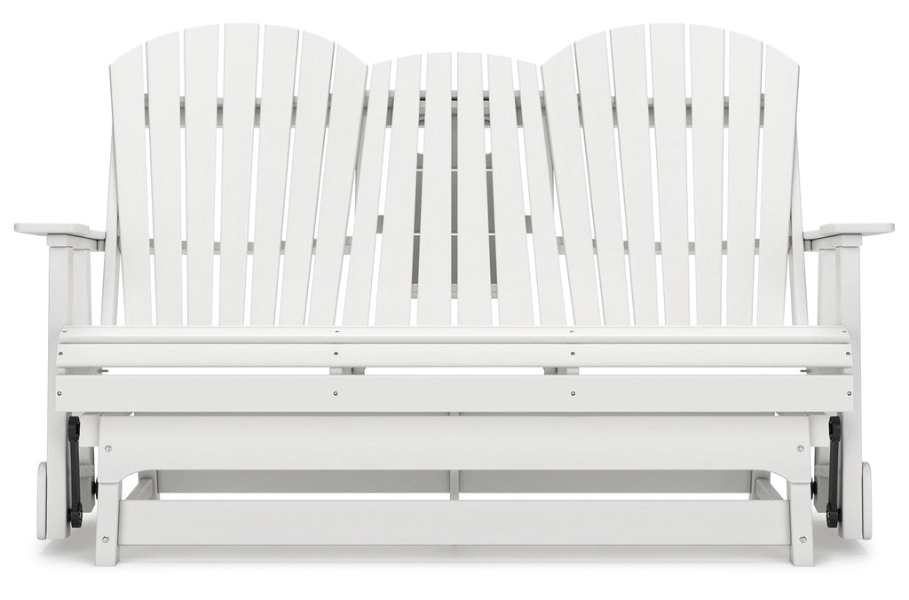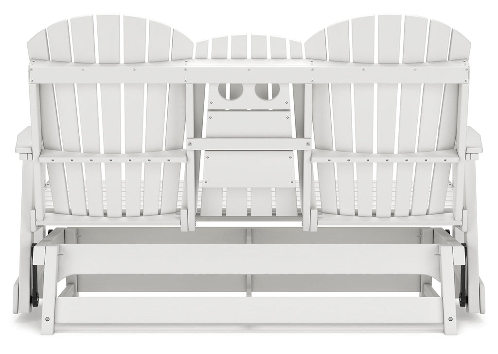 Drift away from everyday worries and into outdoor bliss with this glider loveseat. Dressed in an inviting driftwood hue, the Adirondack-inspired design has a classic feel. It weathers sunny summer days and cozy winter nights with durable MEGA TUFF™ HDPE material. A drop-down console with integrated cup holders keeps refreshments and snacks within easy reach. With the console snapped into the back, this loveseat has even more room for enjoying lazy days in the shade.