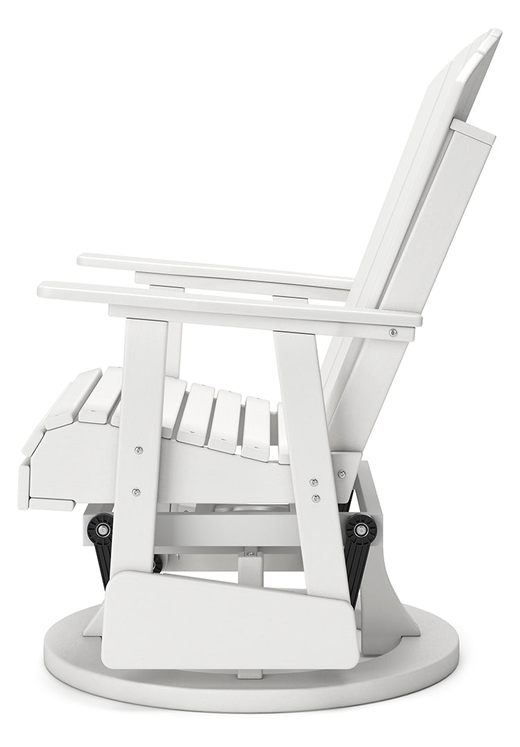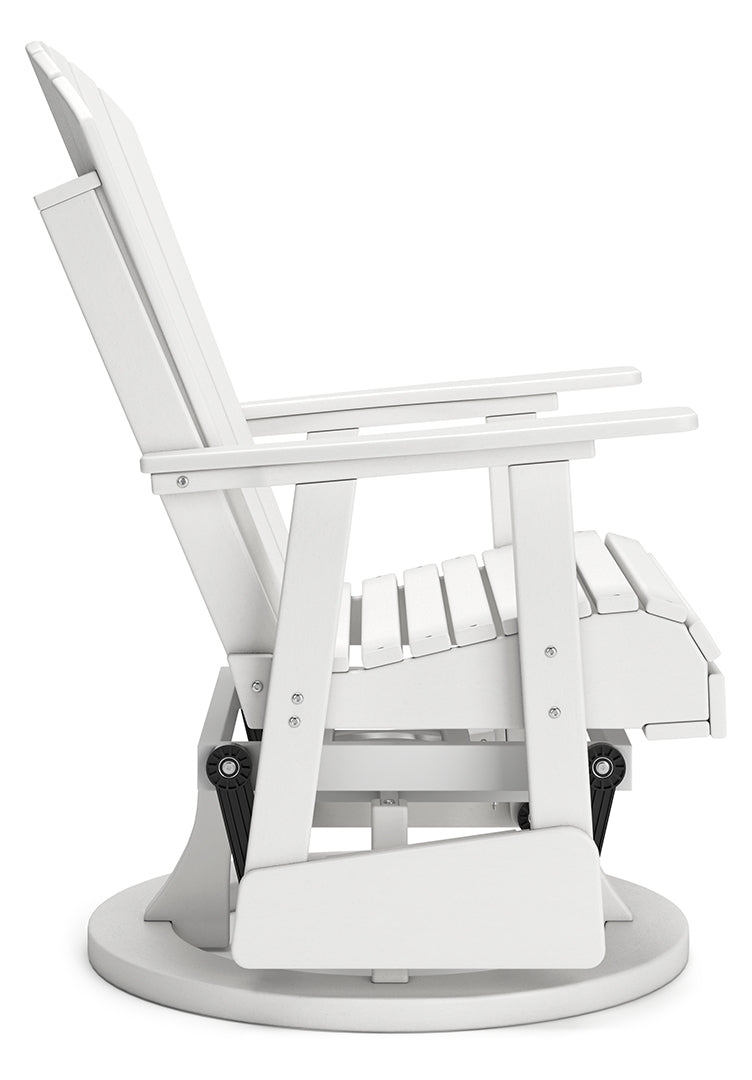 Drift away from everyday worries and into outdoor bliss with this swivel glider chair. Dressed in an inviting driftwood hue, the Adirondack-inspired design has a classic feel. It weathers sunny summer days and cozy winter nights with durable MEGA TUFF™ HDPE material. When it comes to form and function, the chair's 360-degree swivel and rain-shedding slatted design simply go with the flow.