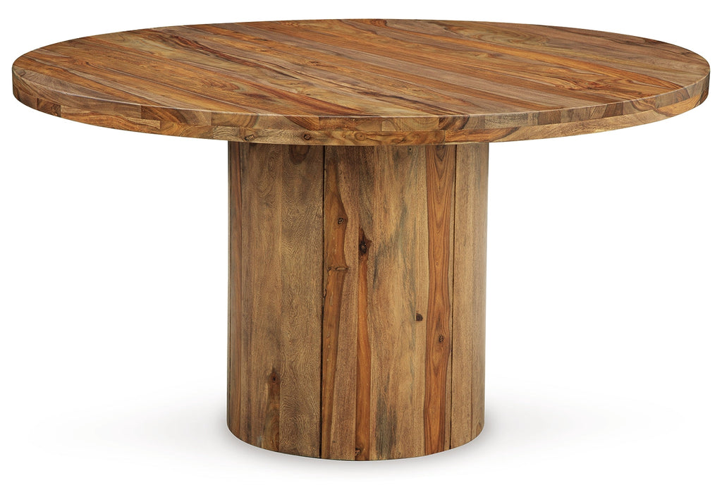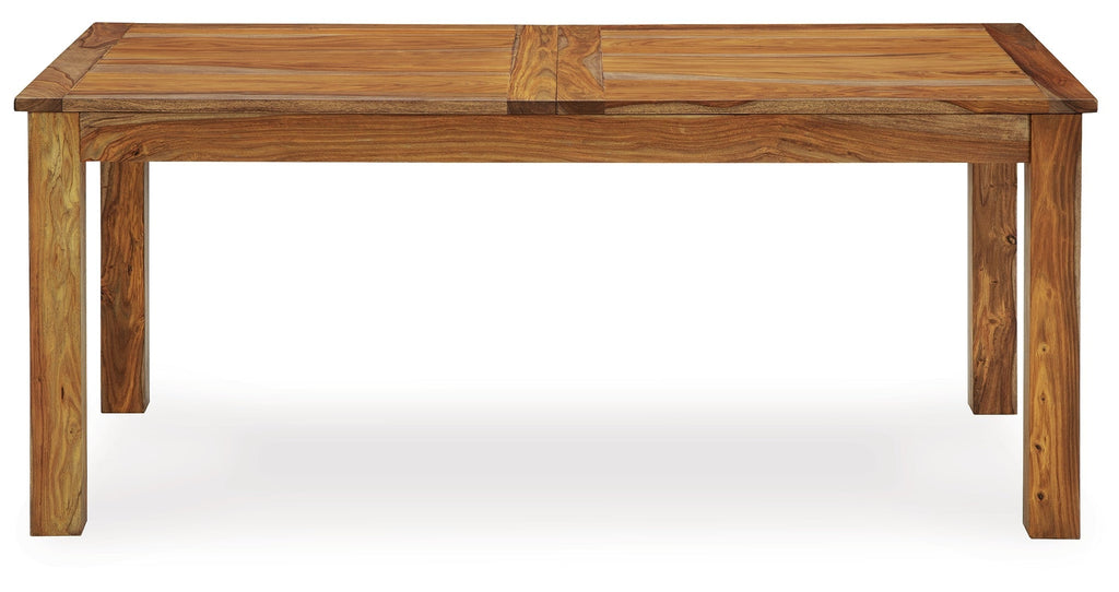 Discover something extraordinary with this clean-lined dining extension table. The rich natural beauty of the wood, enhanced with a clear wood-tone finish, brings an organically stunning vibe to your home. And the table can be extended to fit eight, offering plenty of elbow room for dining or when friends drop by to hang. Strikingly simple, this piece creates an understated, modern feast for the eyes.