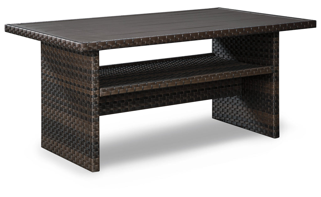 Alfresco living is easy to love with this multi-use table. Its raised height makes it perfect for mealtime, game time, a round of cards or a round of drinks. Resin wicker over a rust-free aluminum frame lends an upscale aesthetic that’s downright durable. Aluminum top is conveniently water and stain resistant.