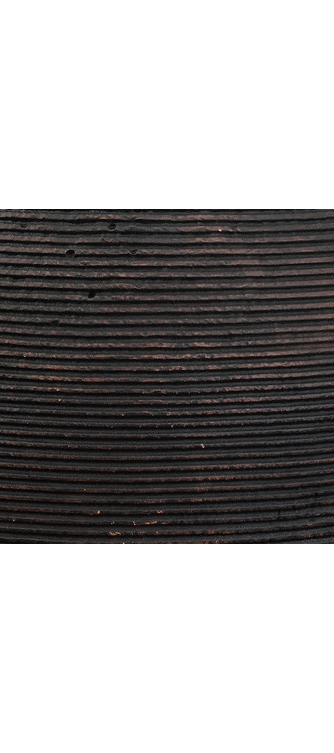 Ribbed textural rings give this vase a wonderful artisanal quality. An antiqued brown finish catches the eye, drawing attention to this elegantly earthy centerpiece.