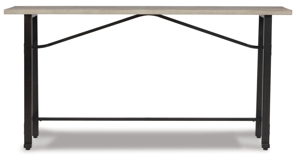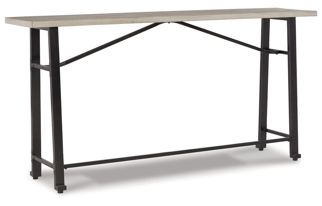 Bring that trendy bar atmosphere home with this long counter-height table. Featuring an acacia veneer tabletop in a whitewashed finish and a dark metal frame for farmhouse fresh appeal, it works well against an open wall or floated behind a sofa to make the most of your living space. Customize your comfort with adjustable height swivel stools (sold separately).