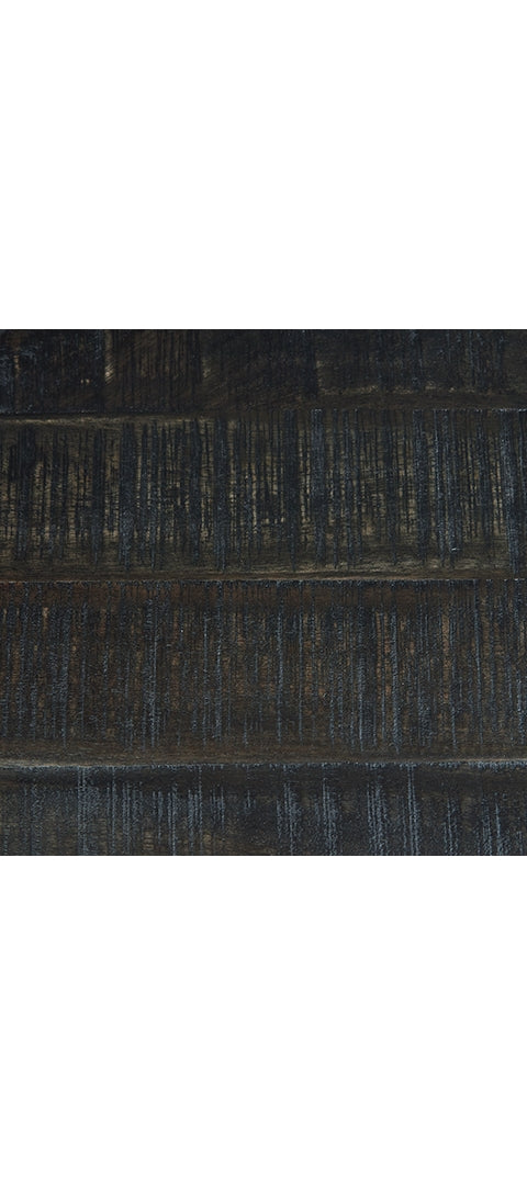 This bookcase has a mixed-material look that seamlessly slips into any contemporary scene. It impresses with the raw beauty of its saw mark effect and grayish brown glaze. Sleek black metal supports provide visual balance. Whether you use it for books or displaying decor, this piece gives you storage and superior style all in one.