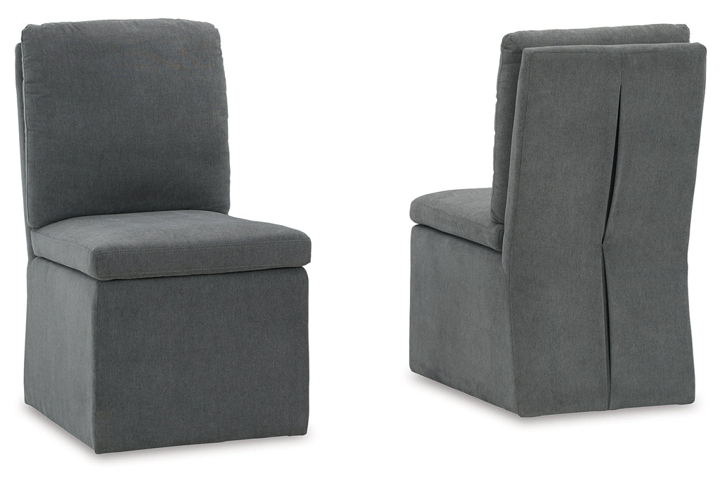 Enjoy home-cooked meals in style on this urban contemporary dining chair. Add it to a dining table or use as extra seating for impromptu entertaining. Covered in a warm charcoal gray woven polyester fabric with a comfortably cushioned seat and back, this chair features a fully upholstered skirt, a pleated back and casters for easy mobility. It’s designed for modern tastes with an urban vibe.