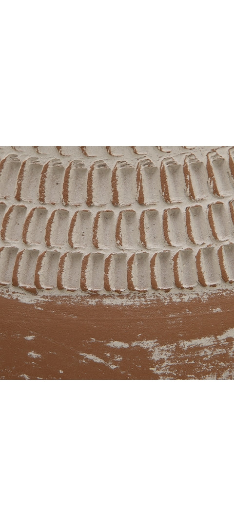 Casual, earthy design comes to life with this terra cotta vase. A distressed white patina is the perfect finish for this piece, giving it an understated presence to stand alone or in pairs on a shelf or display space.