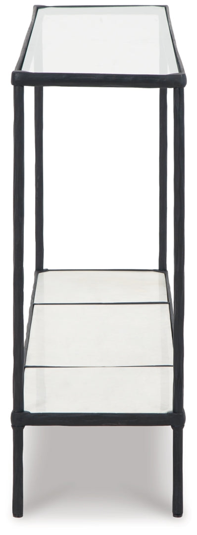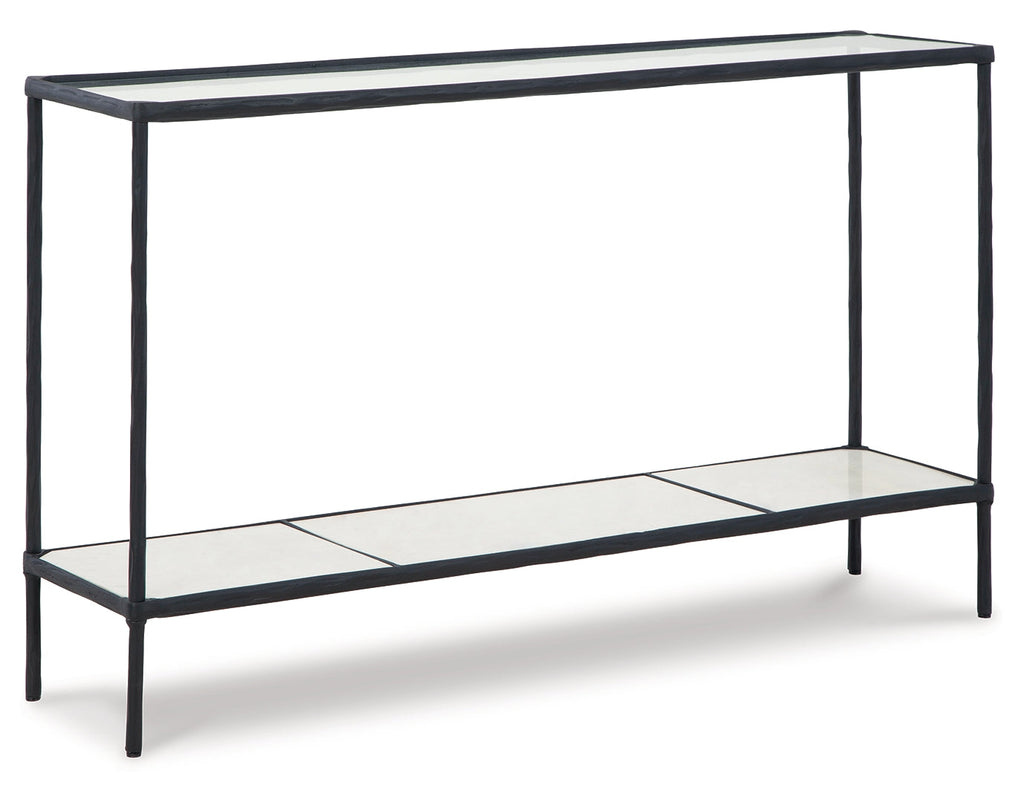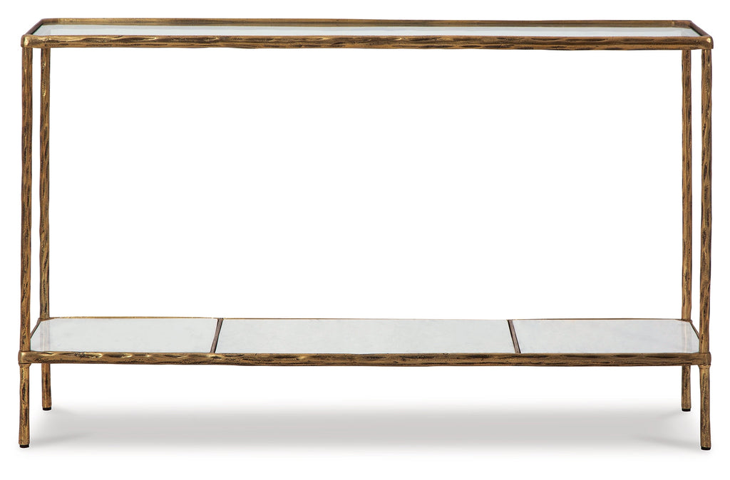 Classic in design with a dash of textural appeal, this console table provides both flair and function. Ideal to rest behind a couch or in an entryway, its glass tabletop and white marble lower shelf offer the perfect perch for decorative pieces. The frame's antiqued brass-tone finish has a rustically luxe look that remains versatile, suiting spaces from casual to contemporary.
