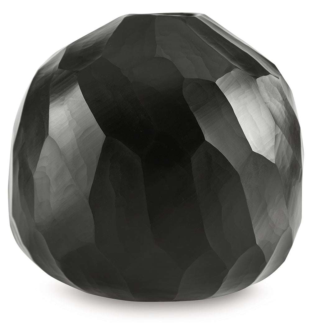 Put the accent on contemporary style with this vase. Wowing with multiple hand-carved facets, the cool black glass delivers true textural appeal from every angle. It’ll bring an artful touch wherever you see fit.