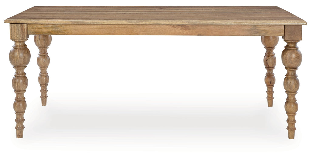 Serve up timeless style with this dining table. Taking a curated approach to casual aesthetics, it’s finished in an inviting light wood tone. For added flair, a substantial tabletop and baluster turned legs round out this trend-right piece.