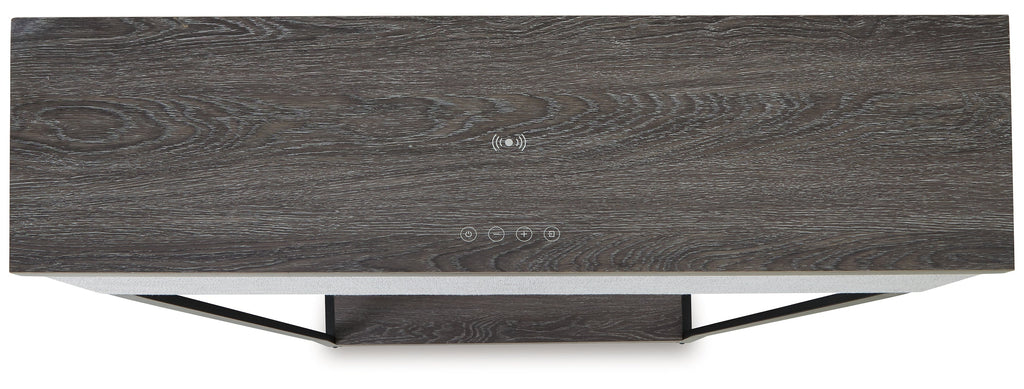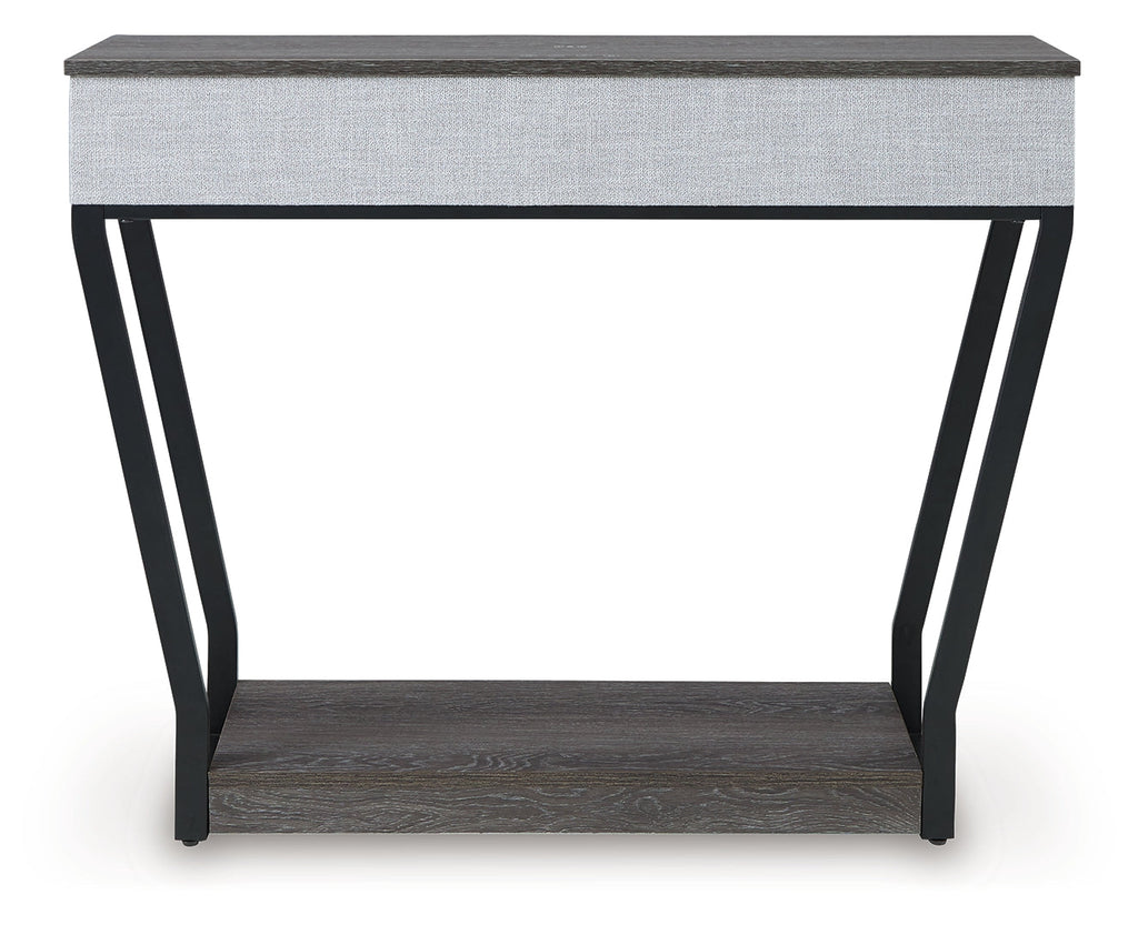 With its decidedly contemporary form, this console sofa table wows with subtly integrated functional features. Wirelessly connect your audio to its built-in speakers for ambiance as you host guests or relax solo. Need to charge up as you lounge? Rest this console against the back of your sofa to keep its wireless and USB charging options in reach. The table's spacious top and lower shelf leave plenty of room to customize the look with your favorite decorative accents.