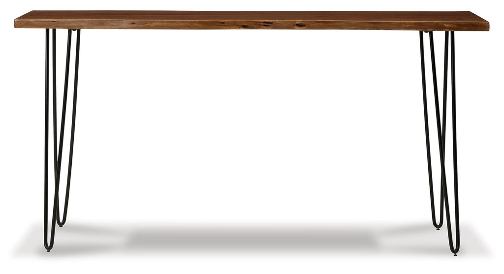 This stunningly simple solid mango wood dining table works effortlessly with contemporary decor. This narrow counter height table is perfect for smaller dining spaces. Or for added function, place it behind a sofa or sectional to make the most of your family room. The tabletop's gorgeous, natural-looking color contrasts nicely with the matte black metal legs, providing an instant upgrade to your space.
