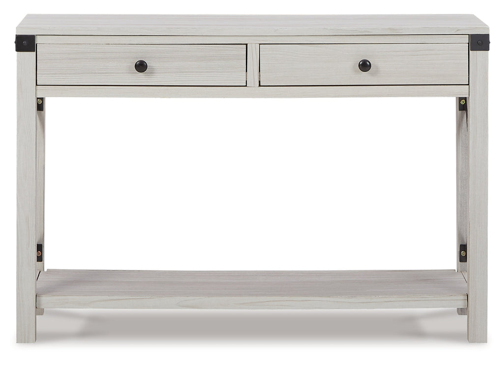 If you’re going for a simply striking addition to your space, this console table really makes a statement, creating an openly elegant place to showcase your style. With its replicated vintage barn wood effect in a subtly whitewashed color tone, this piece is decidedly understated yet rich with character. Metal crossbuck accents give it just enough flair.