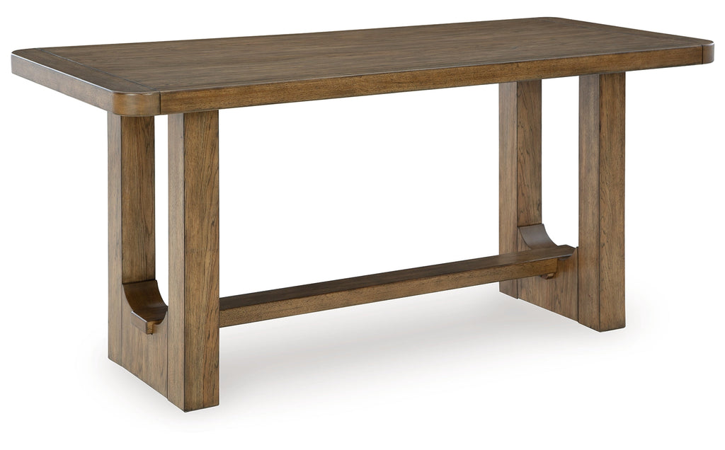 Define your dining space with reliable function and style. This counter height table sits comfortably at the intersection of modern lodge and casual lifestyle aesthetics. Its softly rounded corners keep kids safe and your dining area stylish. Charming architectural elements and a light brown glazed finish reflect your warm and welcoming disposition. Even with its poise, this table remains practical.