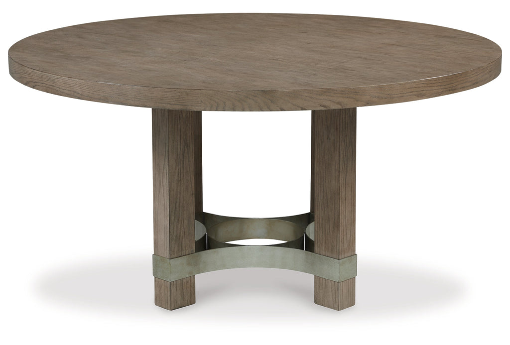 You want your dining room to reflect your refined sensibilities while remaining forward-thinking in design. The simple silhouette of this dining table opens the door to a dining room with the curated look and subtle flair you desire. The piece's elegant waxy gray finish gets an added touch of luxury with a double-pedestal base and beveled-edge top, showing remarkable attention to detail. Whether you're hosting family meals or holiday entertaining, this table is a place to gather around in streamlined style.