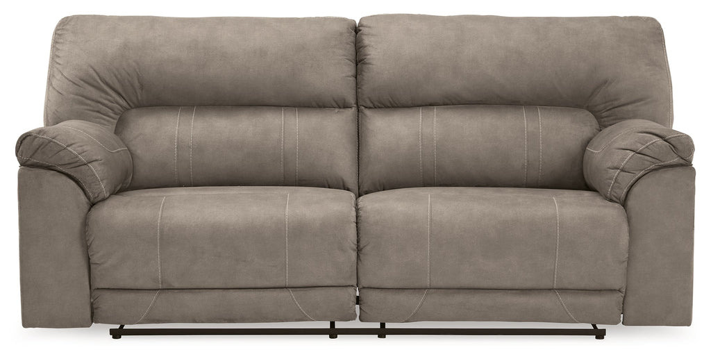 Strike a balance between the indulgent comfort you crave and the cool aesthetic you long for with this reclining power sofa. Offering the cool look of weathered leather, the feel-good slate-tone upholstery takes neutral to new heights. Simply chic divided back tailoring, jumbo stitching and a USB port in the one-touch power control are among the finer details that make all the difference.