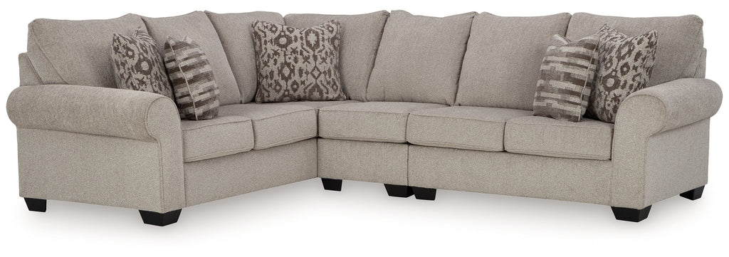 Whether your vision is traditional or cozy farmhouse, this sectional has the corner on style. Merging ultimate comfort with striking good looks, this chic seating includes coordinating accent pillows for that much more feel-good allure.