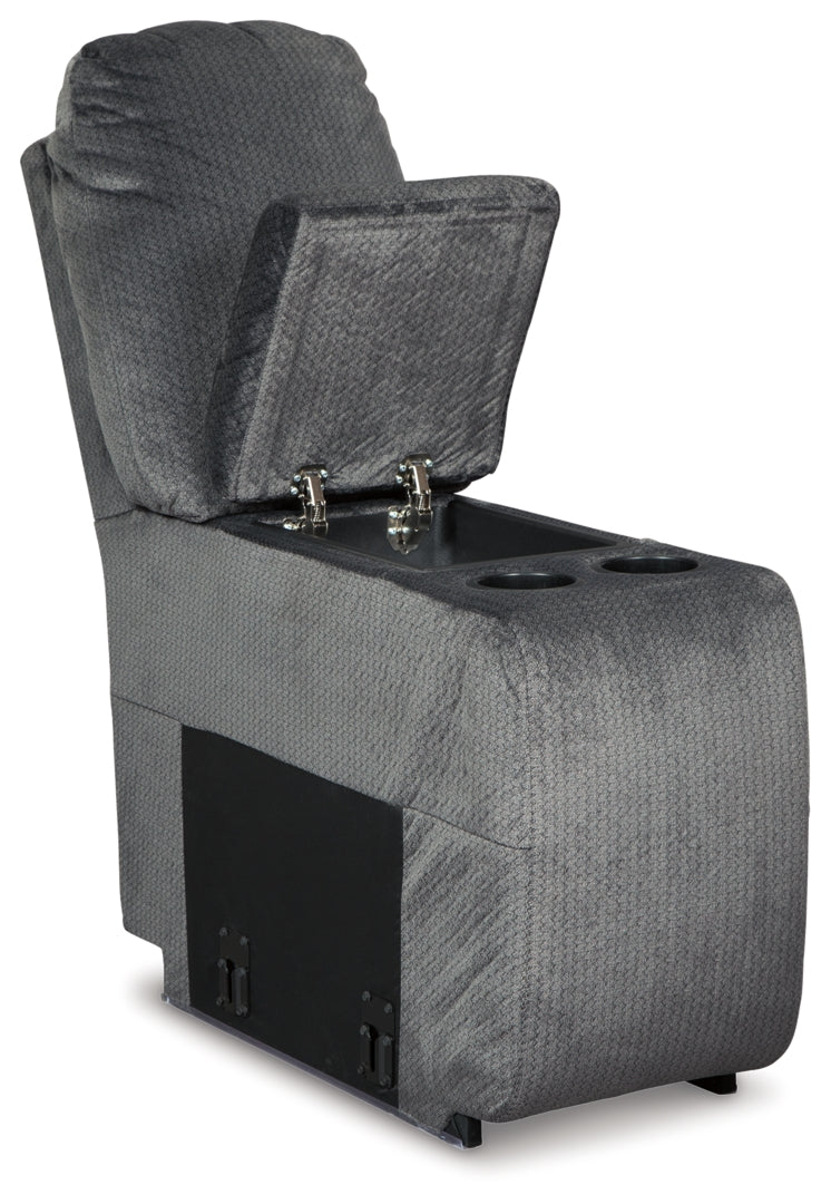 - Includes 3 pieces: left-arm facing zero wall recliner, right-arm facing zero wall recliner and console with storage