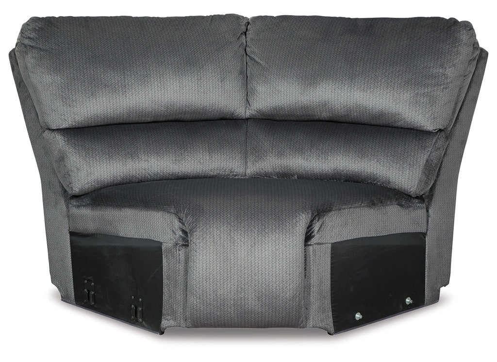 Large-scale comfort is yours with this modern reclining sectional. With supremely padded back, seat and arm cushions, it's the hero for ultimate relaxation. Your guests will love the extra room via the wide recliners. Microfiber upholstery is welcoming, soft and luxuriously covers the extra-wide seats. Recline back and kick up your feet to bolster your comfort level even more. Factor in the handy console with storage, and now you'll have a spot to tuck away the remotes and two convenient cup holders for setting down drinks.