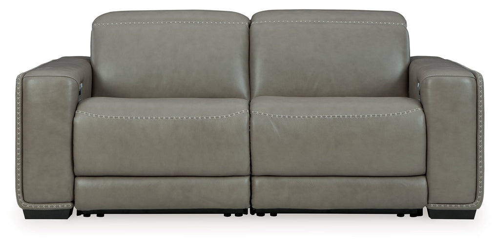Truly putting high design into recline, this power loveseat with gray leather match upholstery proves that just because you’re a recliner doesn’t mean you have to look like one. Deceptively beautiful, its ultra clean-lined aesthetic is as cool and contemporary as they come. Low-profile back has a super swank look. When you need more support for your head and neck, the press of a button engages the Easy View™ power adjustable headrest, designed to let you lean back and still have a primo view of the TV. Ever-so-subtle curves and stunning stitching perfect the aesthetic.
