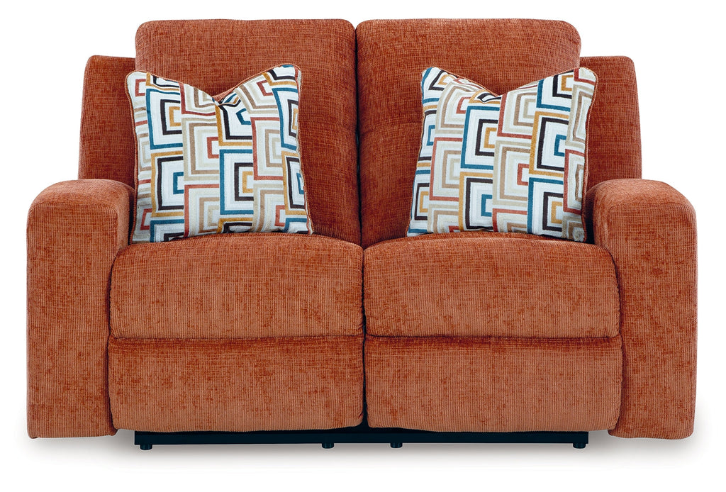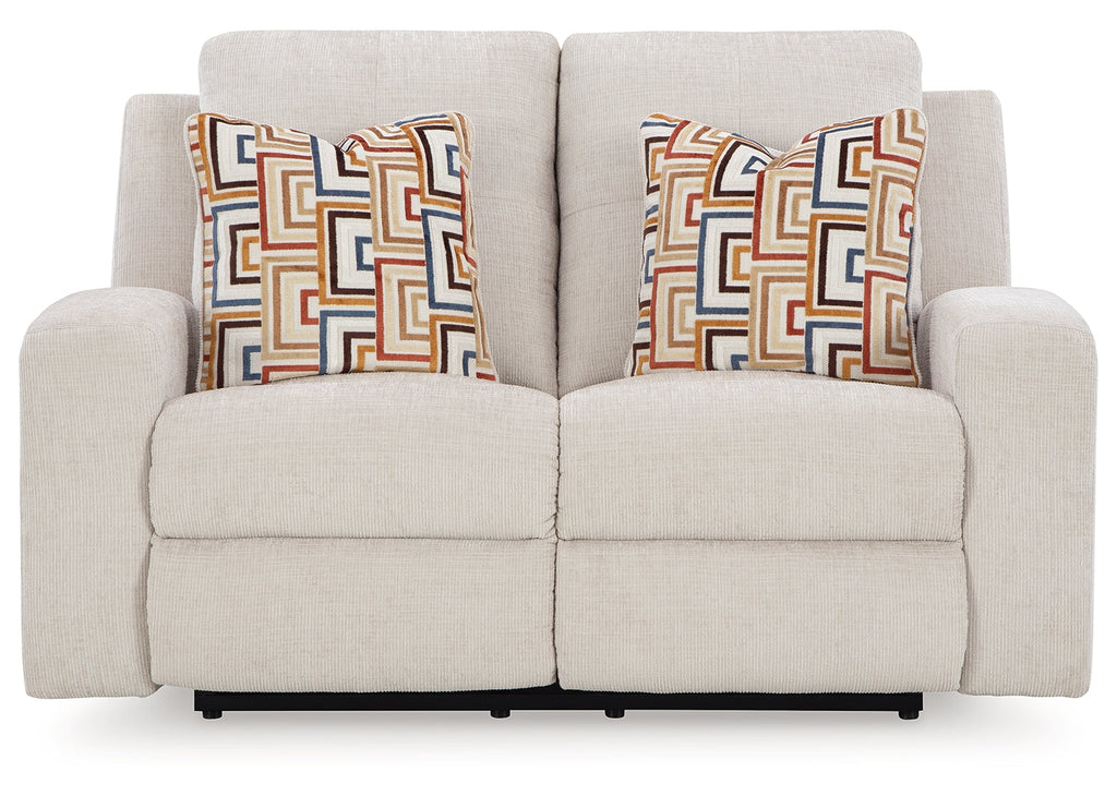 This reclining loveseat invites you to a luxuriously soft lounging experience. The chic hue fits right in with contemporary color palettes. A tufted back keeps the look right on trend. Balancing style and function, its pull tab reclining effortlessly takes you to relaxation mode.