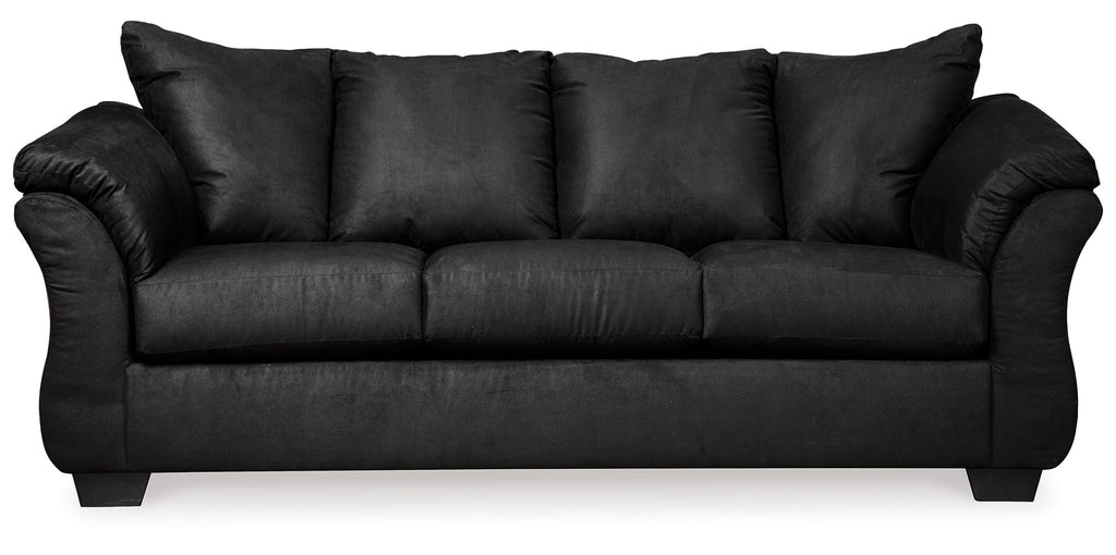 Talk about fine lines and great curves. That’s the beauty of this standout sofa—made to suit your appreciation for clean, contemporary style. A striking flared frame, comfy pillow top armrests and an ultra-soft upholstery that holds up to everyday living complete this fashion statement.
