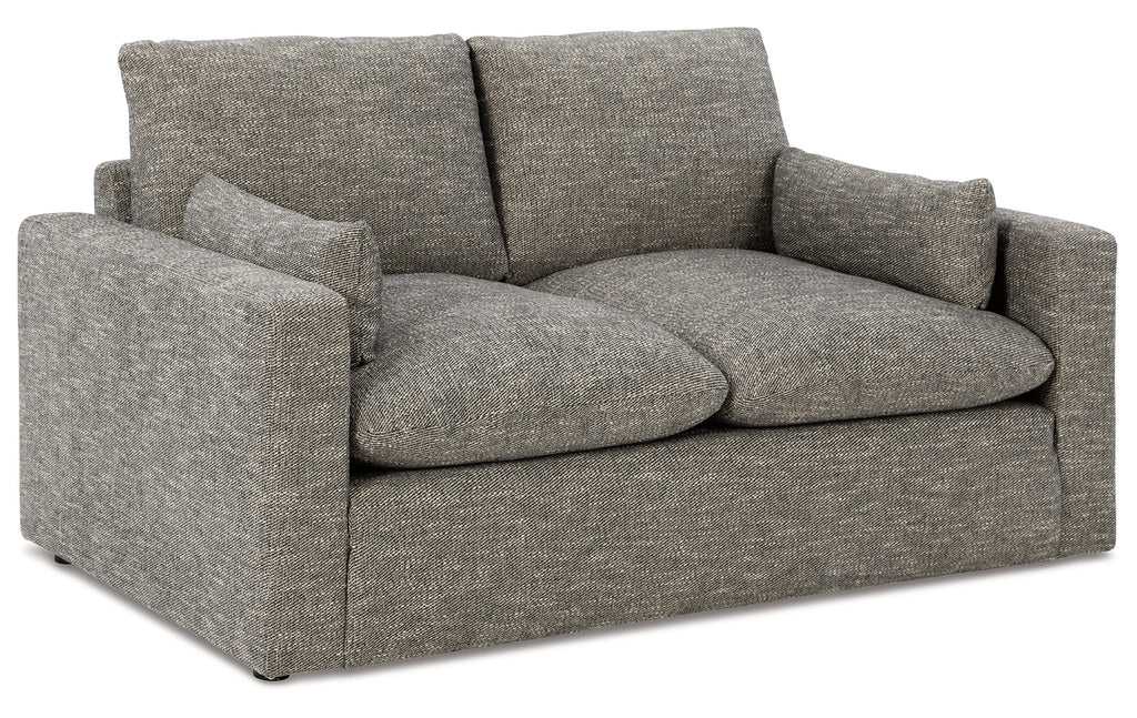 On the days when rest and relaxation seem out of reach, this loveseat provides a positively plush seating experience. Its feather-fiber blend cushions invite you to float away in cloud-like comfort. Striking granite-hued upholstery and a streamlined frame grant this cozy piece a look well-suited to contemporary spaces.