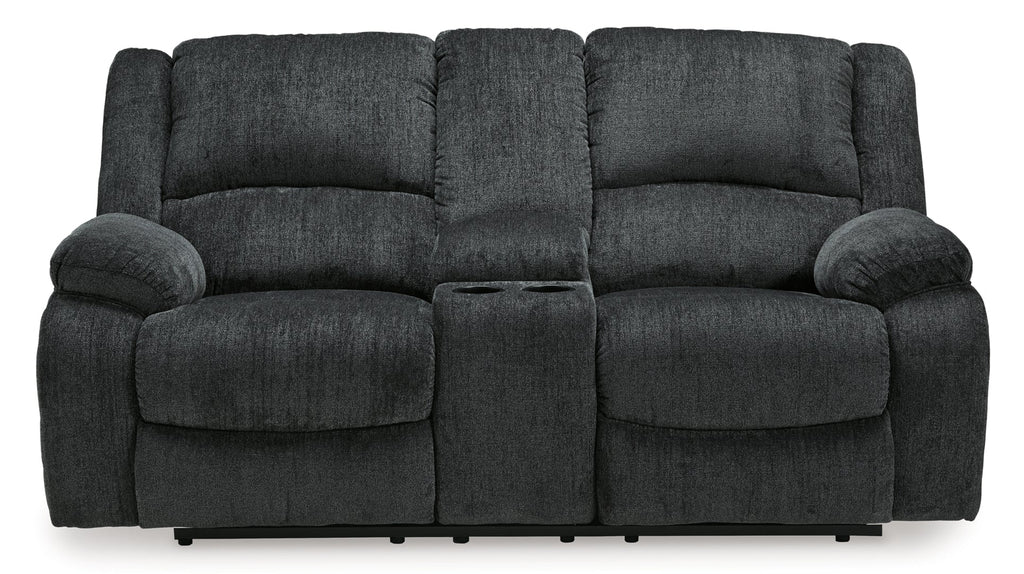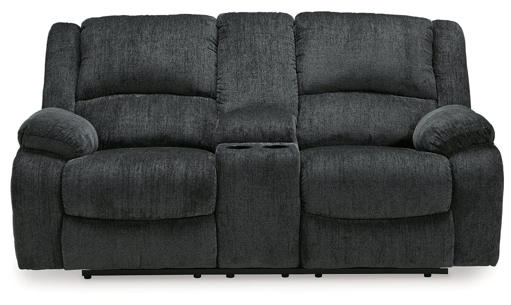 Built for luxury, this reclining loveseat with center console lets you kick back in reliable style. The thick, softly textured chenille upholstery provides a comfy surface on which to lounge. With bustle back construction and thickly cushioned armrests, this piece gives you the dependable support you need to unwind with the convenience of the center console to ease your evening.