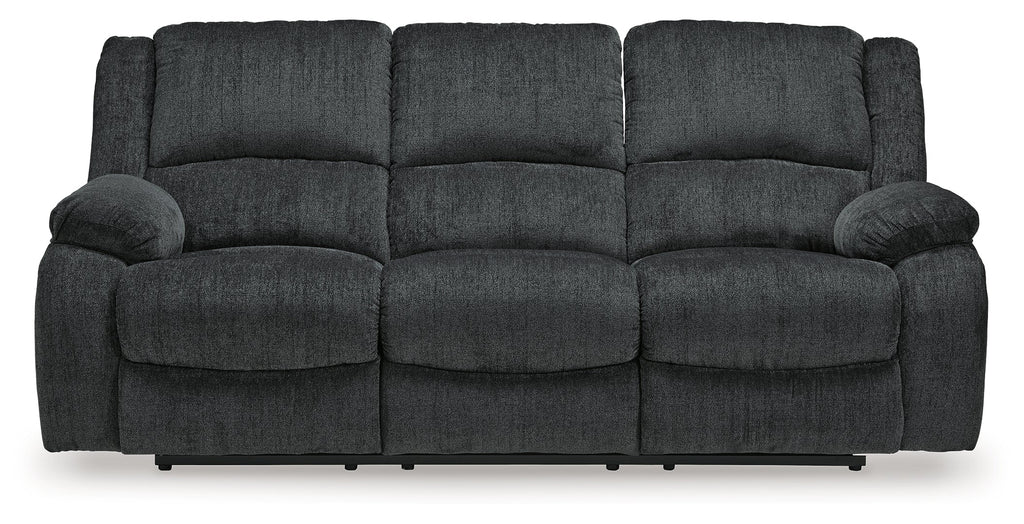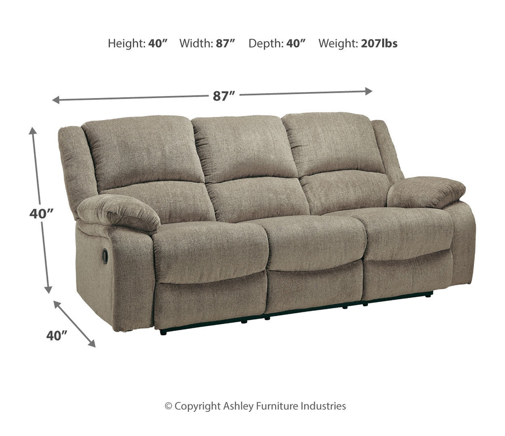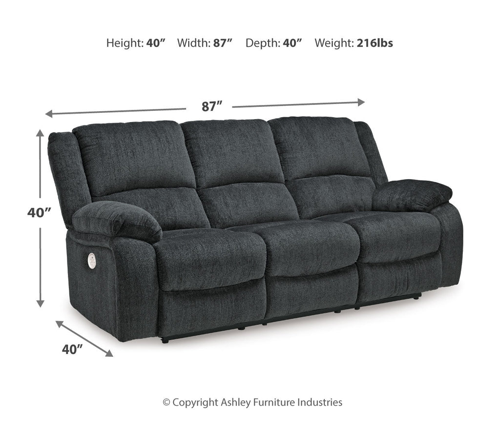 Built for luxury, this power reclining sofa lets you kick back in reliable style. The thick, softly textured chenille upholstery provides a comfy surface on which to lounge. With bustle back construction and thickly cushioned armrests, this piece gives you the dependable support you need to unwind while the handy USB port provides the power to keep your devices going.