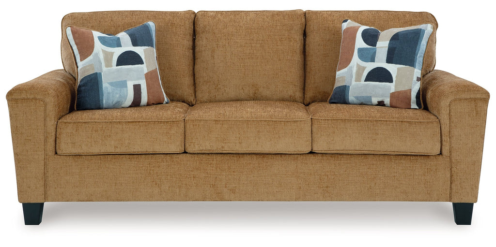 There’s something about this sofa that’s so easy to appreciate. Maybe it’s the plush upholstery and soothing tone, eager to support your quest for total relaxation. Perhaps it's the modern flair of its simple lines, tapered legs and abstract-patterned pillows. Whatever it is that appeals to you, this is a piece you're gonna love.