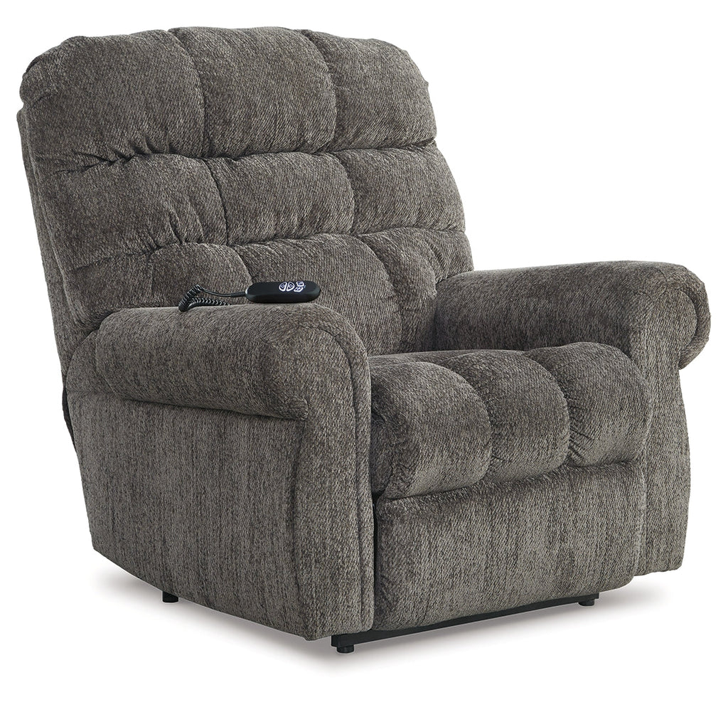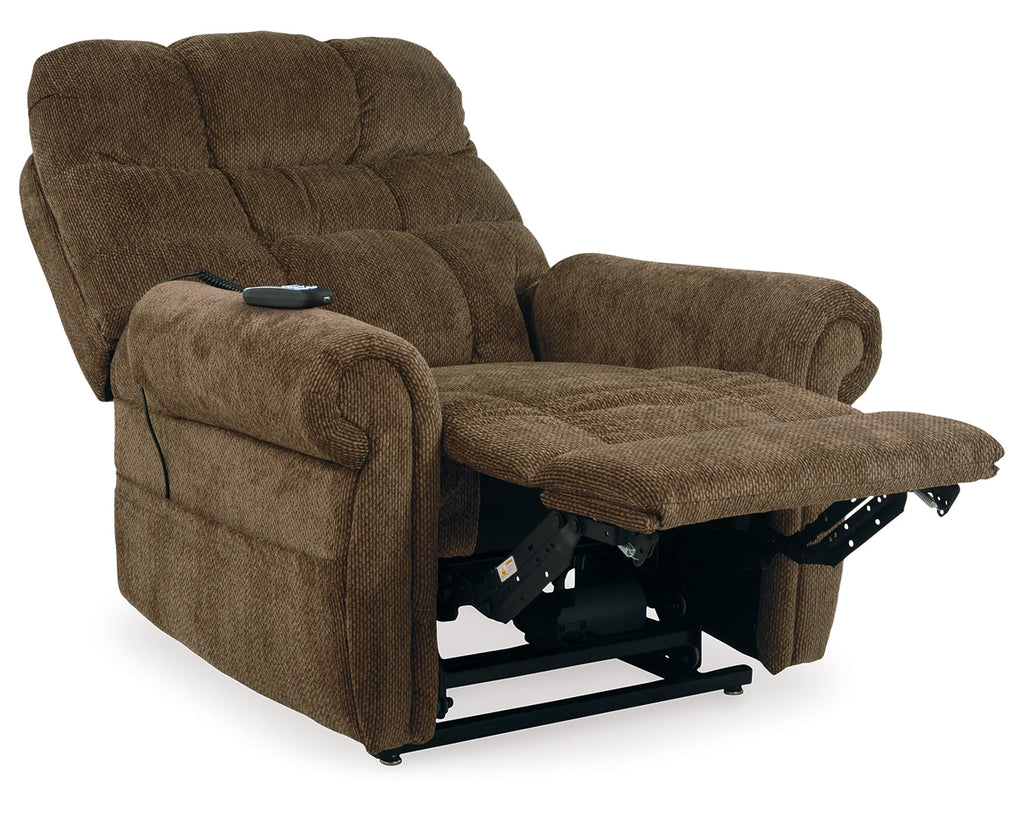 The next generation of recliners has arrived in fine style. Beyond its perfectly placed pillow support and sumptuous chenille-feel upholstery, this power lift recliner takes custom comfort to a new level. With the touch of a button, the gentle lift-and-tilt feature eases you to your feet from a sitting position or fully reclined.